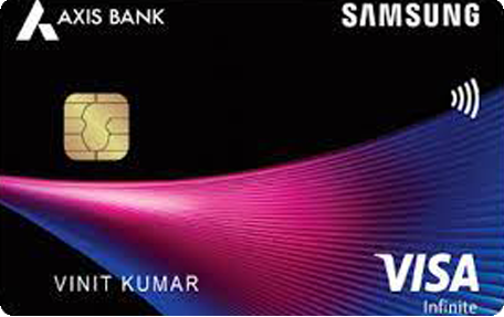 The Samsung Axis Bank Infinite Credit Card is a premium co-branded credit card , issued by Axis Bank in partnership with Samsung India. It offers an attractive cashback program on Samsung purchases, special benefits on 5 preferred merchants serving a variety of needs, special benefits on international spending, and a range of lifestyle benefits such as complimentary lounge access both within India and abroad.