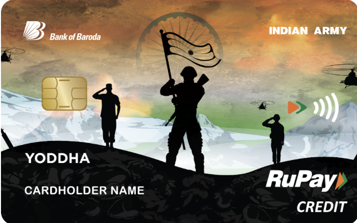 Bank of Baroda INDIAN ARMY YODDHA Credit Card, is a card exclusively for Indian Army Personnel. You get higher cashback on department store and grocery purchases. You also get lifestyle benefits like complimentary access to domestic airport lounges (2 times per quarter), and complimentary golf (1 time per quarter).